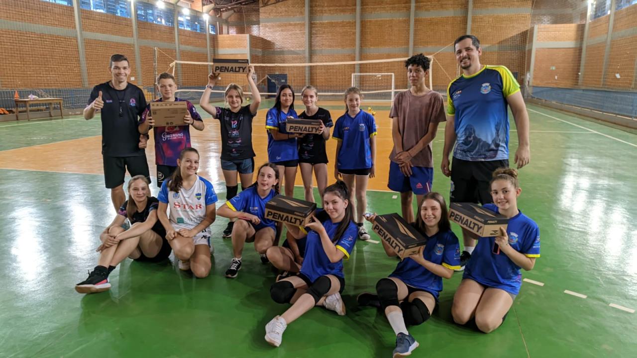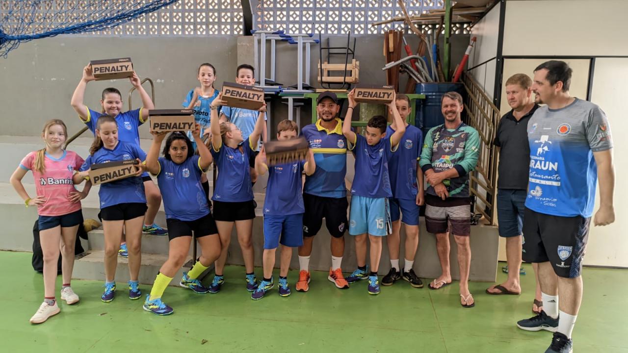 Crianças das várias modalidades esportivas de base de Santa Helena, que fazem treinamentos na cidade e também nos distritos receberam tênis esportivos para desenvolver suas atividades.