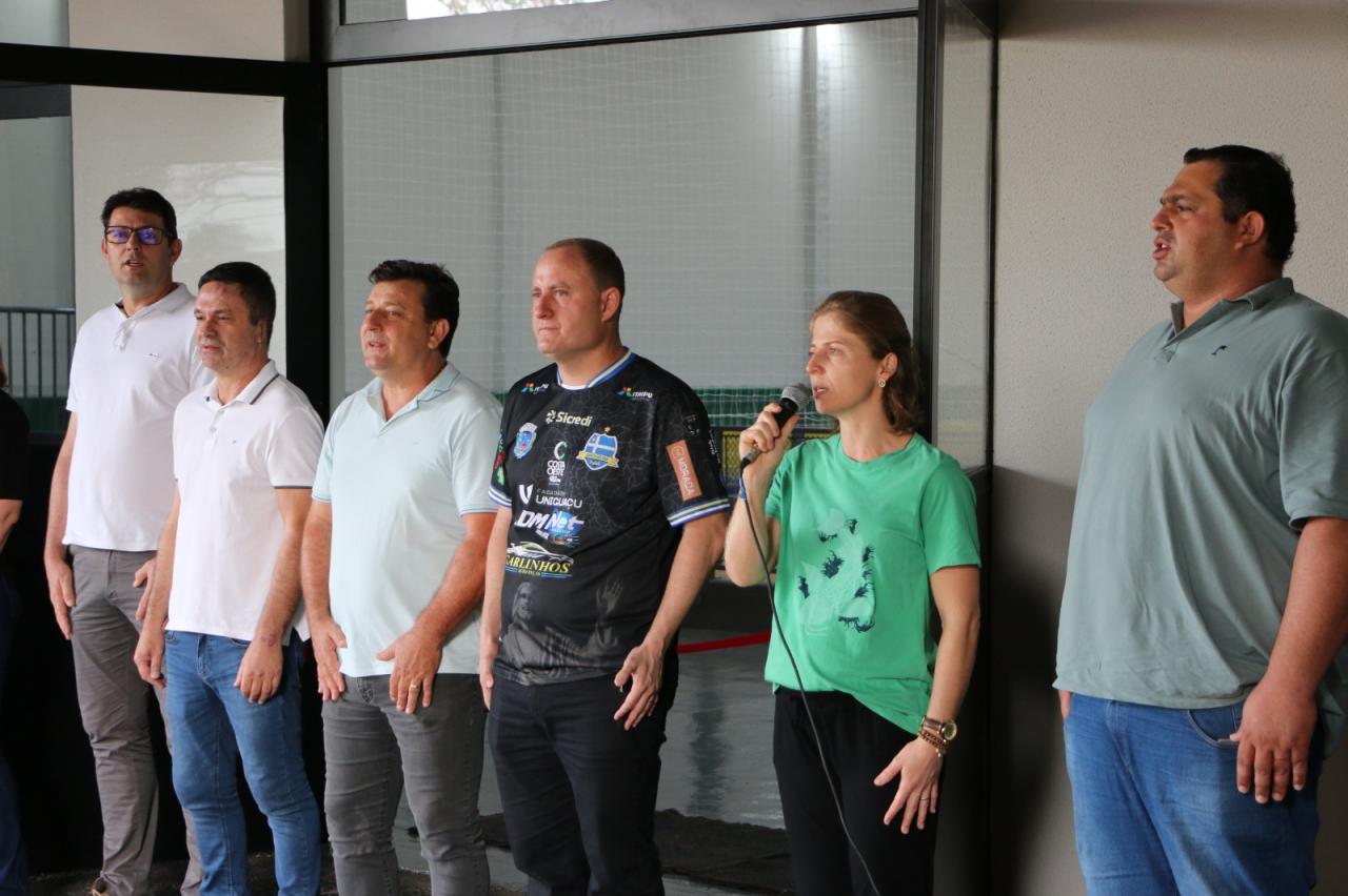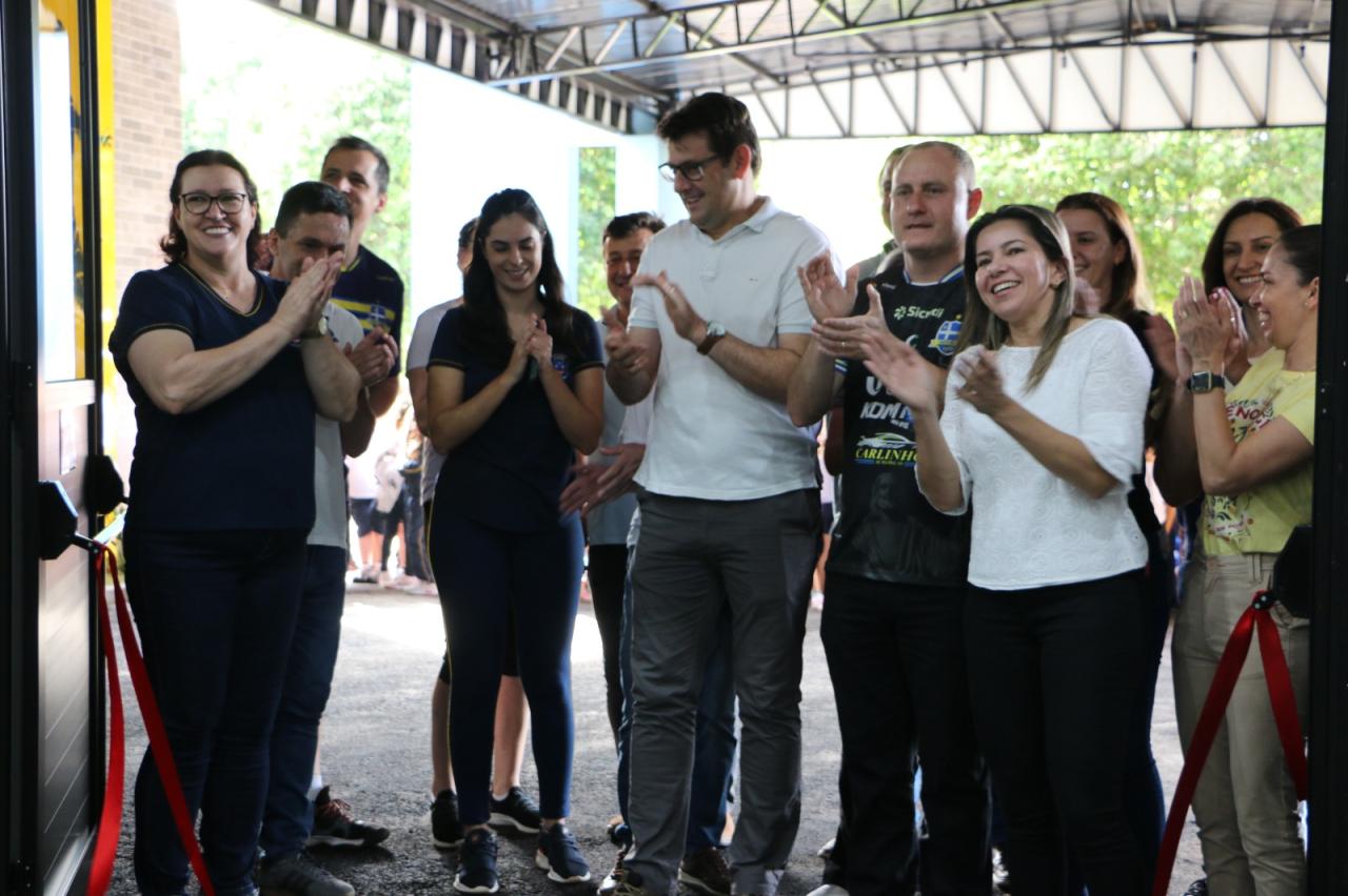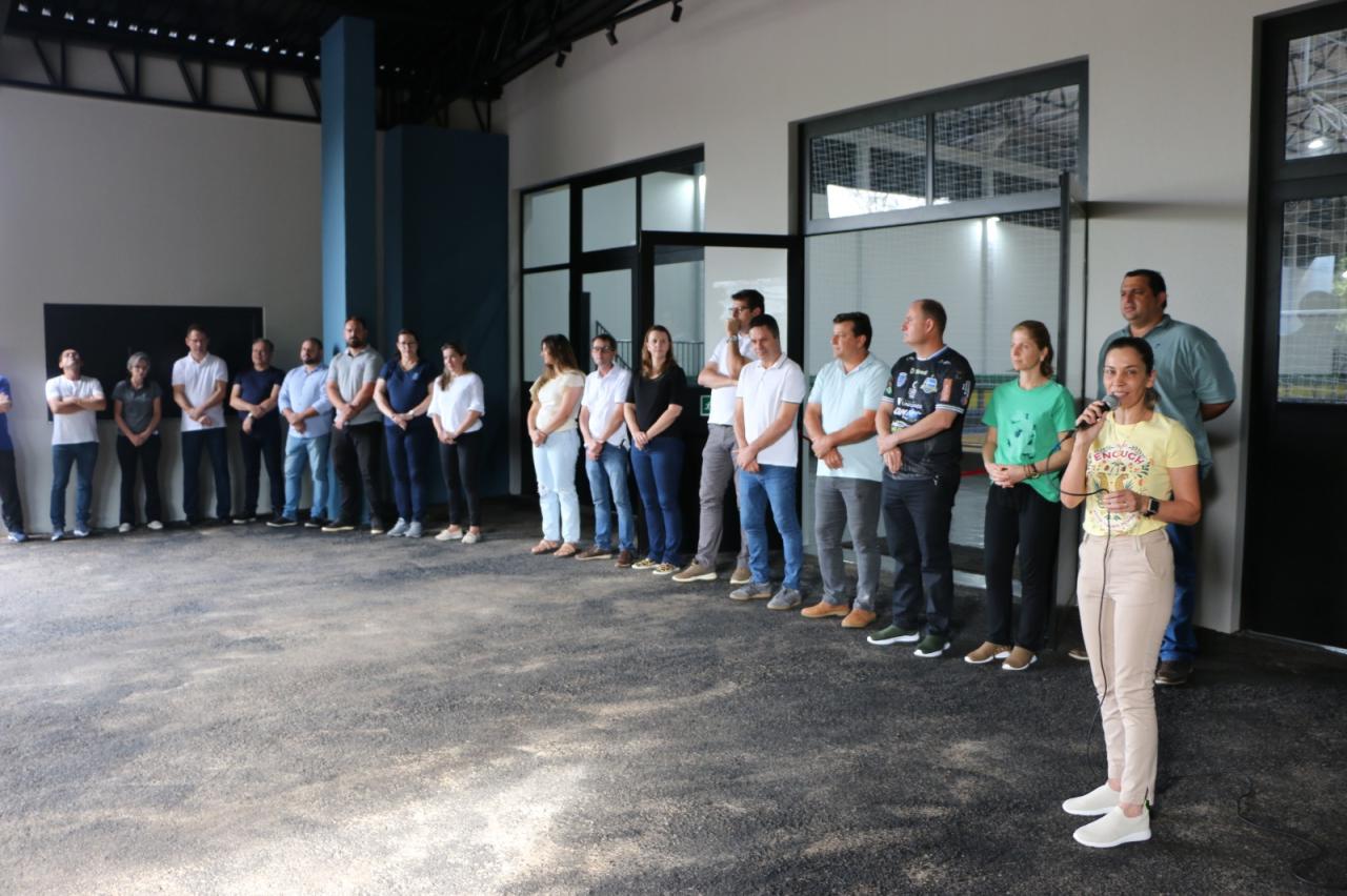 Autoridades locais, alunos e professores da Escola Inês Mocellin se reuniram para celebrar a reinauguração oficial deste novo espaço esportivo de primeira linha.