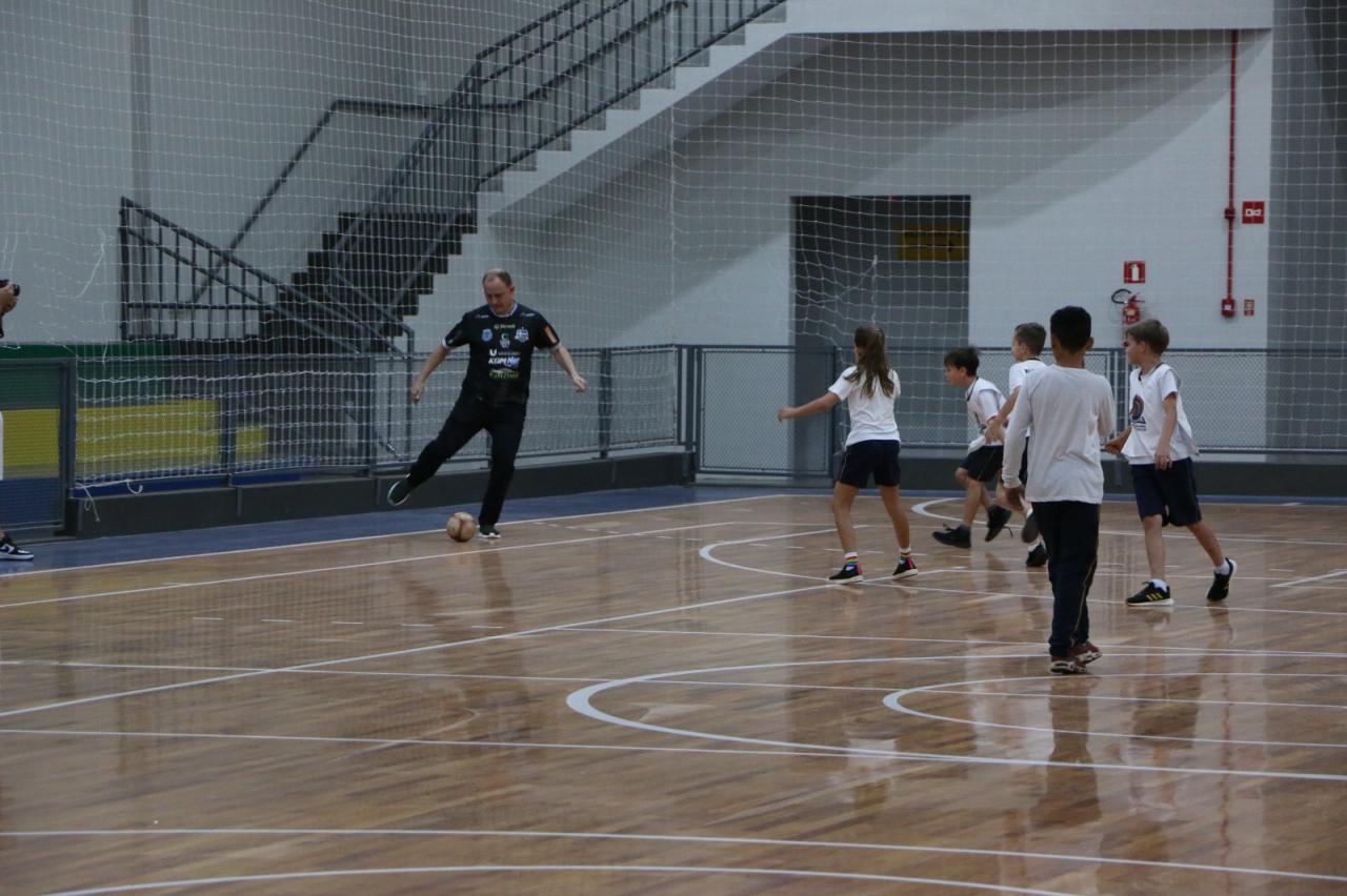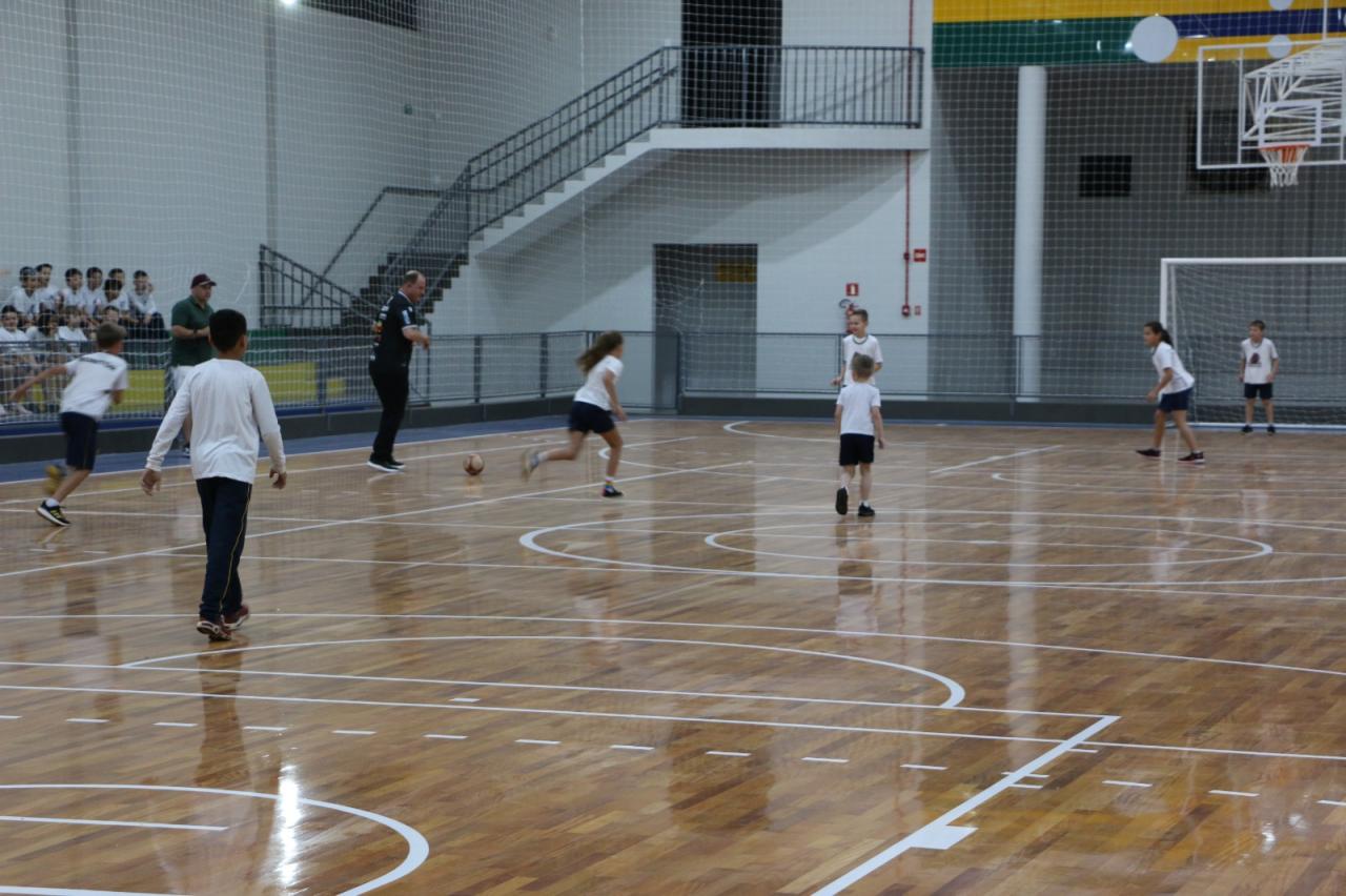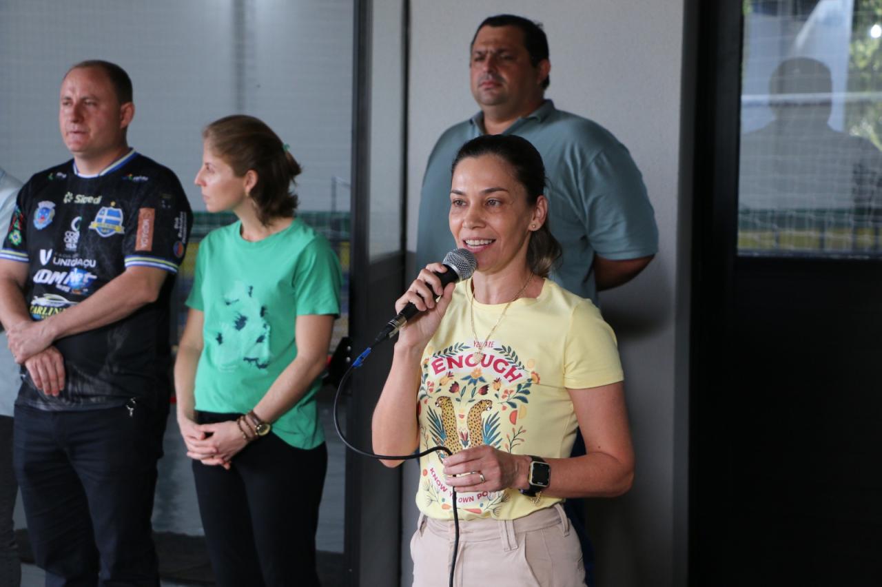 Autoridades locais, alunos e professores da Escola Inês Mocellin se reuniram para celebrar a reinauguração oficial deste novo espaço esportivo de primeira linha.
