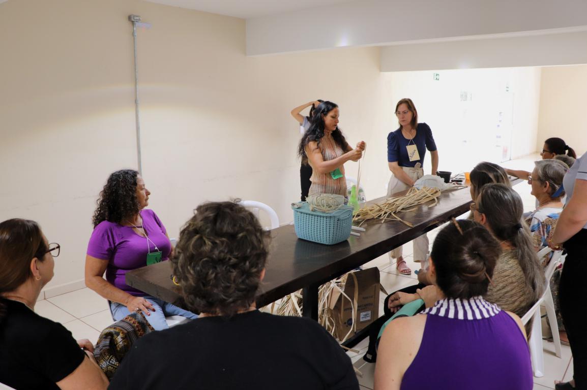 Durante o encontro, os participantes tiveram acesso a seis oficinas. Foram abordados assuntos como, redes sociais e técnicas de fotografia, o Projeto Partiu Região com a Rede, trançado em fibra de bananeira, souvenir com reciclagem, como vender melhor, precificação e controles financeiros.