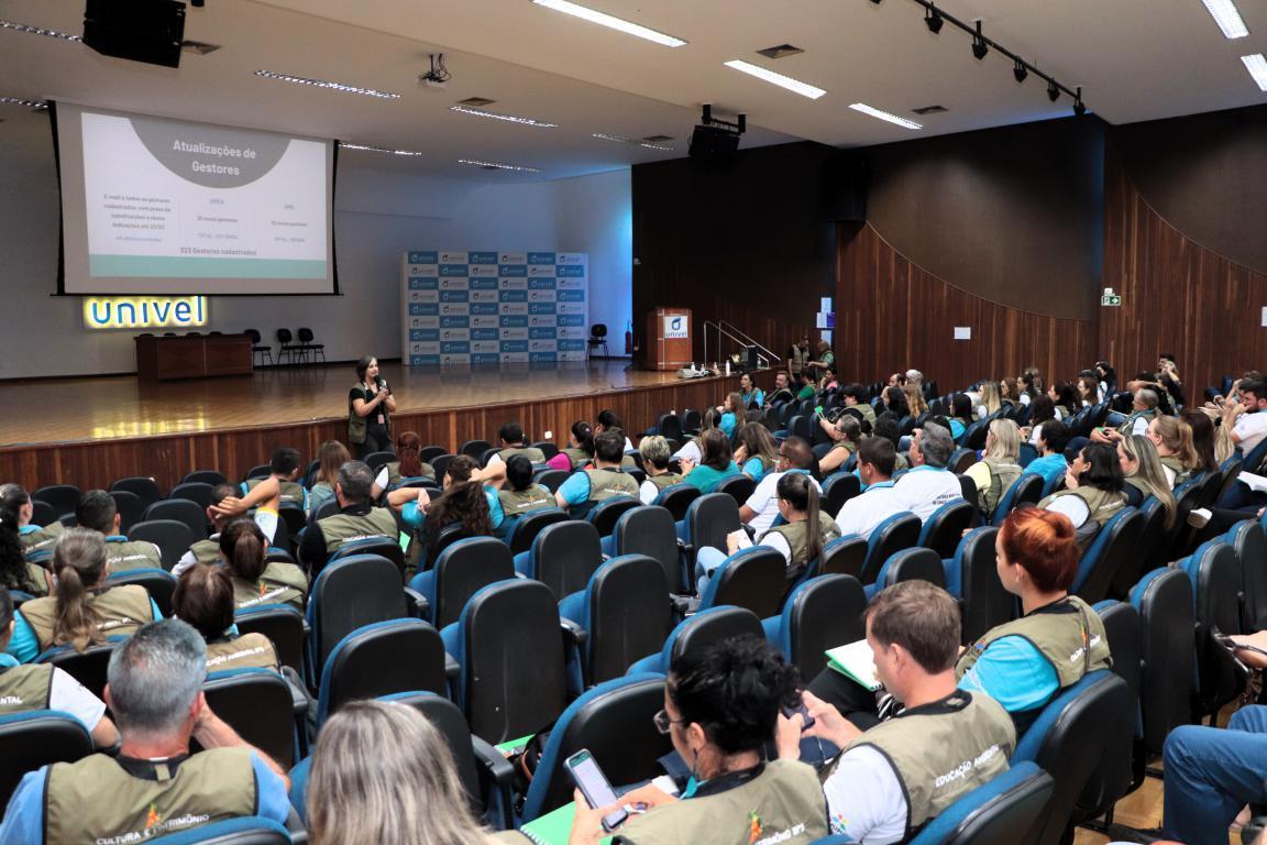Nesta terça-feira (12), foi realizado encontro de alinhamento pelo Convênio Linha Ecológica: Educação, Cultura e Sustentabilidade, firmado entre Itaipu Binacional e Conselho de Desenvolvimento dos Municípios Lindeiros ao Lago de Itaipu. A dinâmica reuniu aproximadamente 220 gestores municipais de educação ambiental e cultura, com o objetivo de discutir e alinhar as próximas atividades previstas no plano de trabalho do convênio.