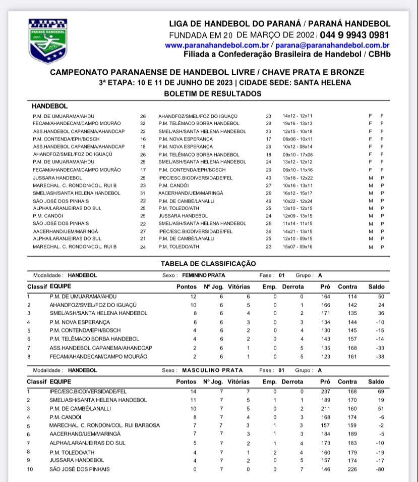 Santa Helena foi palco no último final de semana de grandes jogos que fizeram parte da terceira etapa da chave Prata e Bronze do Paranaense de Handebol.
