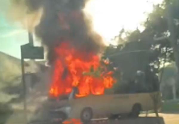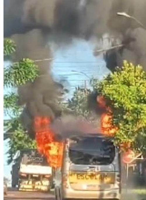 Um incêndio registrado no início da manhã desta terça-feira (23), consumiu um micro-ônibus escolar em Santa Helena.