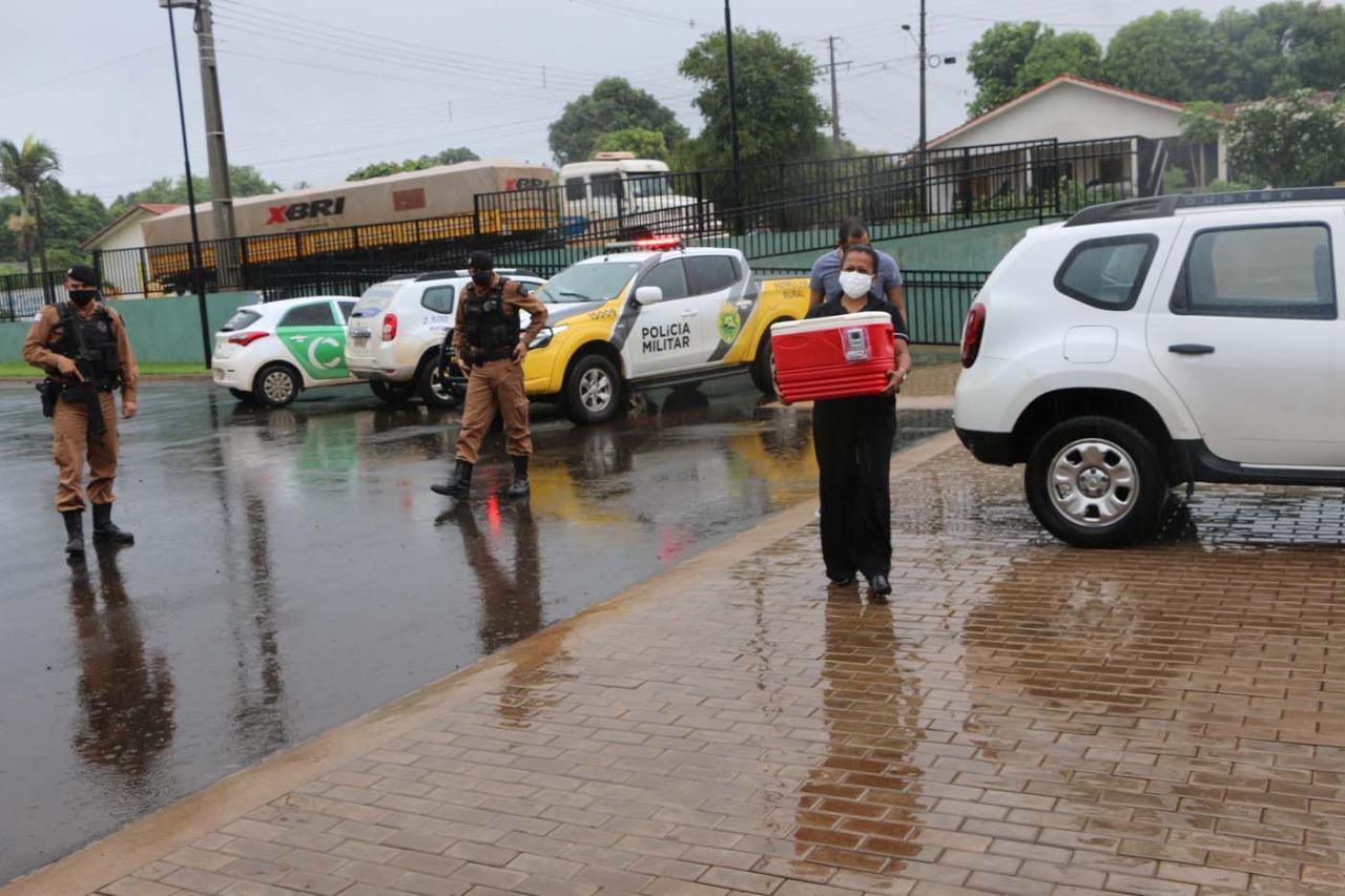 As primeiras doses da vacina contra a Covid-19 chegaram em Santa Helena por volta das 9h40 desta quarta-feira trazidas por um veículo da Secretaria de Estado da Saúde que estava escoltado por uma viatura da Polícia Militar.